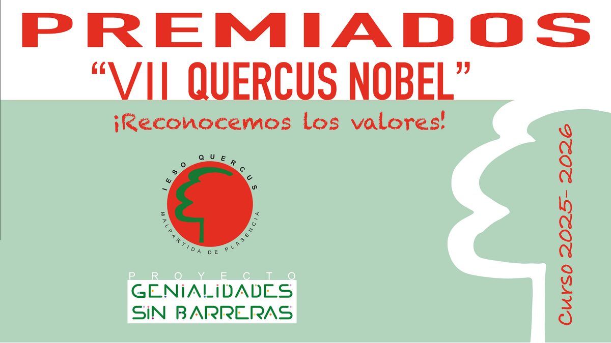 Organizado por el Dpto. de Orientación dentro del Proyecto Genialidades Sin Barreras, en el acto del Día Escolar de La Paz, se han entregado los VII Premios Quercus Nobel, que buscan reconocer los valores a nivel individual y grupal del alumnado.