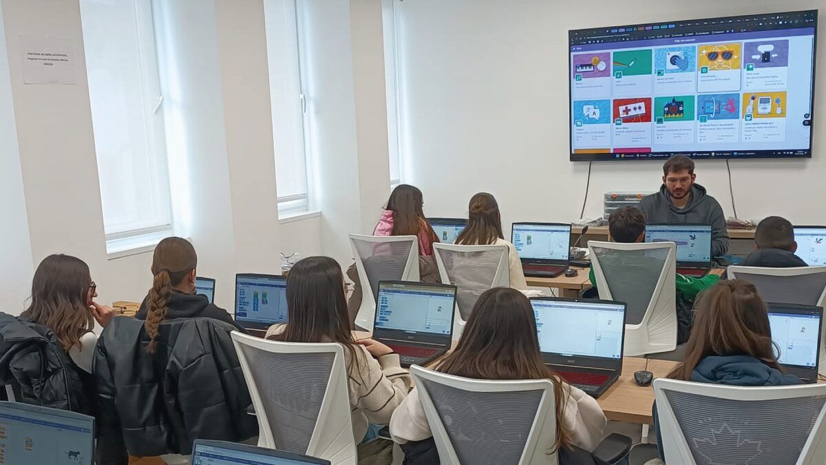 Taller de Scratch en el CircularFab Escrito en 19 de enero de 2026. Publicado en Departamentos, Dpto. Mixto, Portada, ROBÓTICA EN EL AULA DEL FUTURO, Tecnología. Taller de Scratch con 3°ESO-B en el Circular Fab de Malpartida de Plasencia con las profesoras Mar Rosa y M. Carmen Mateos en las materias de Tecnología y Robótica en el Aula del Futuro.